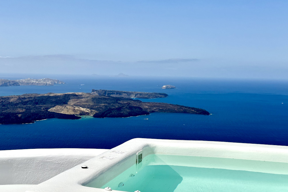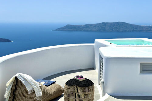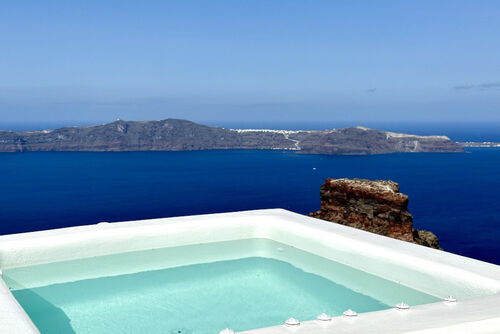 Located on the ground floor of the hotel, offers views of Aegean and has a balcony with outdoor heated jacuzzi.